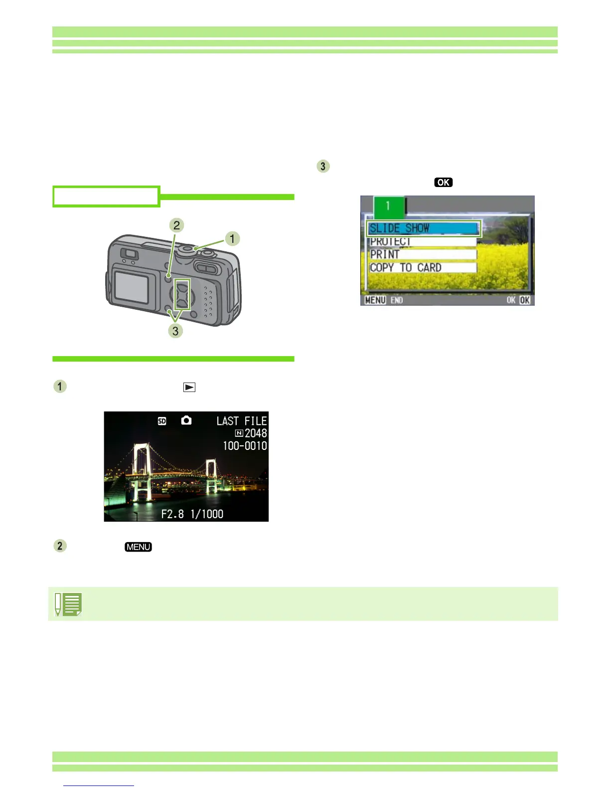 sequentially on the LCD Monitor. This function is called a slideshow.