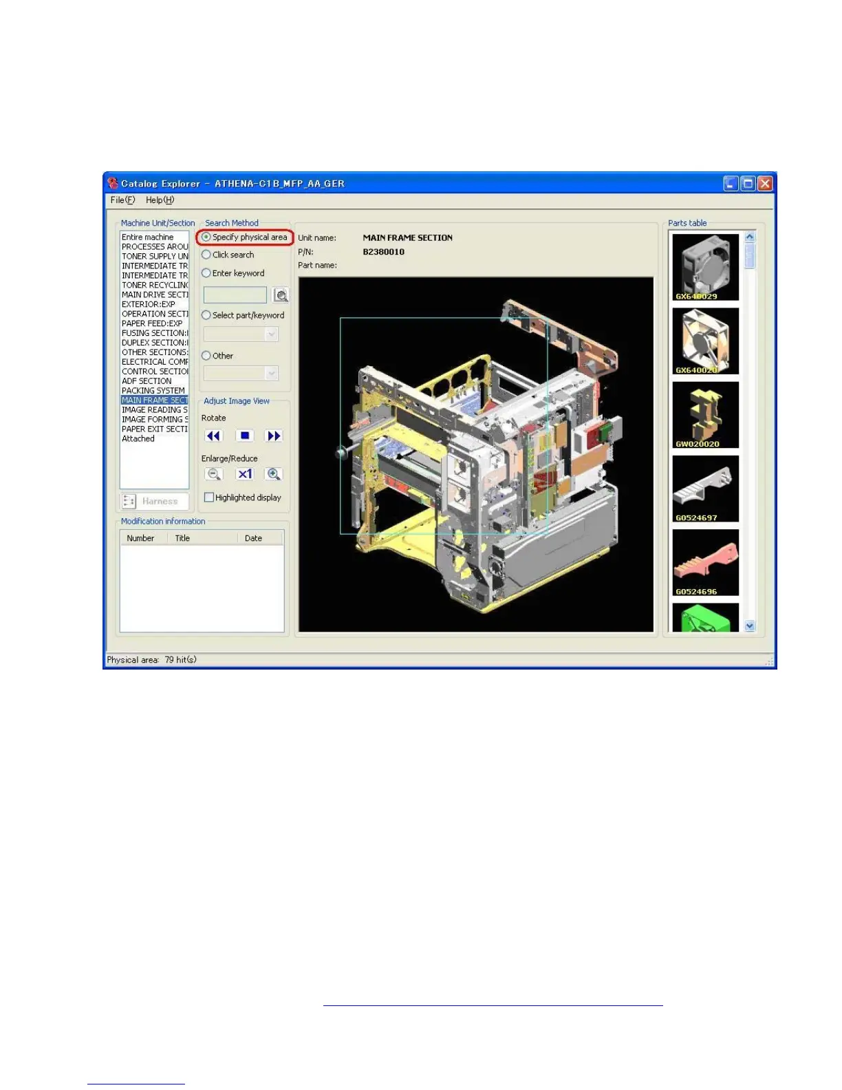 Search for the part by specifying a physical area within the unit/section using the mouse.