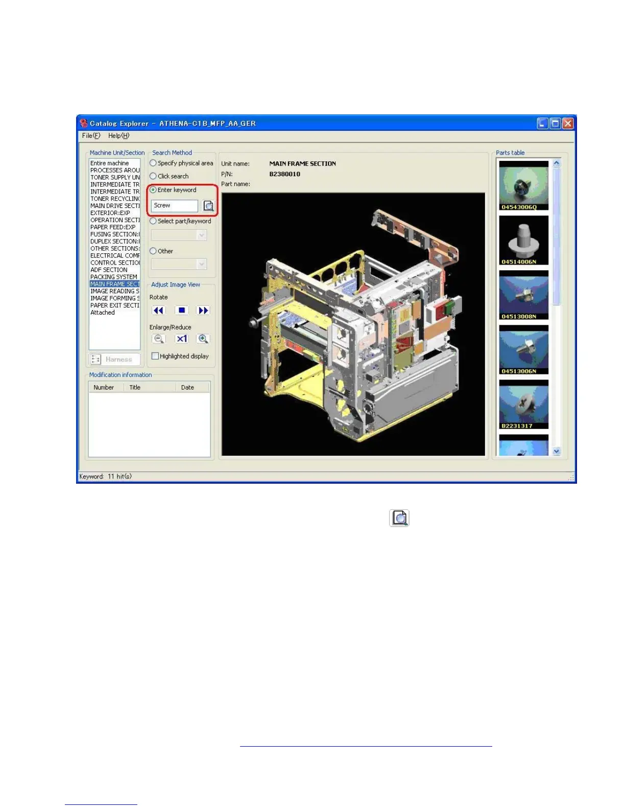 Search for the part by entering a keyword, such as a part name or part number.