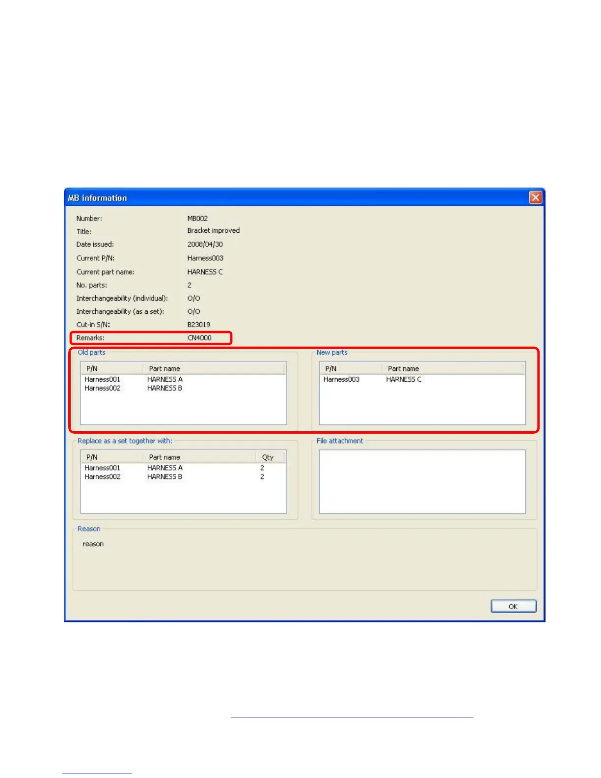 - There is no tabled display of “Old Parts” versus “New Parts”