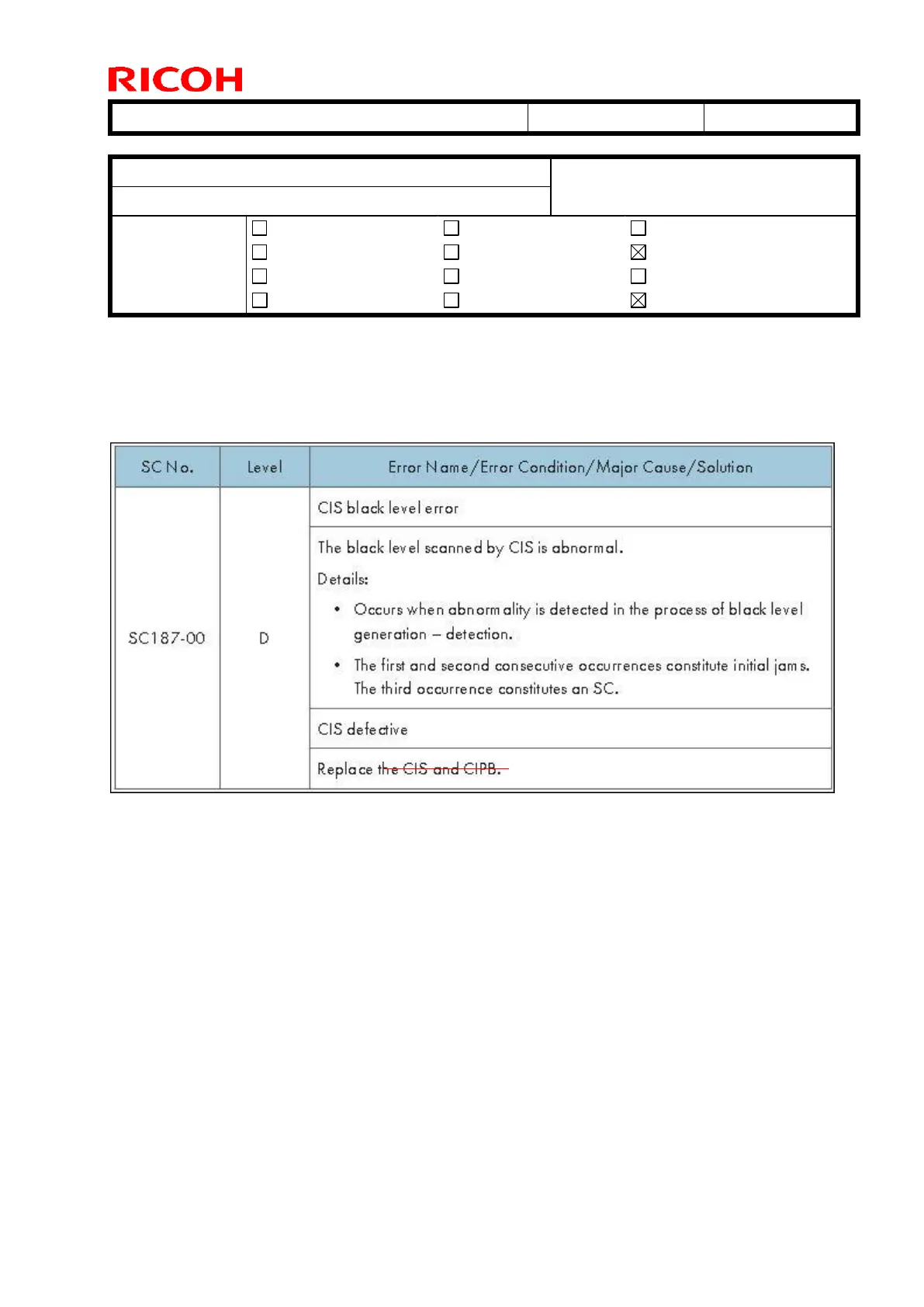 The description of SC187-00 is incorrect in the field service manual.