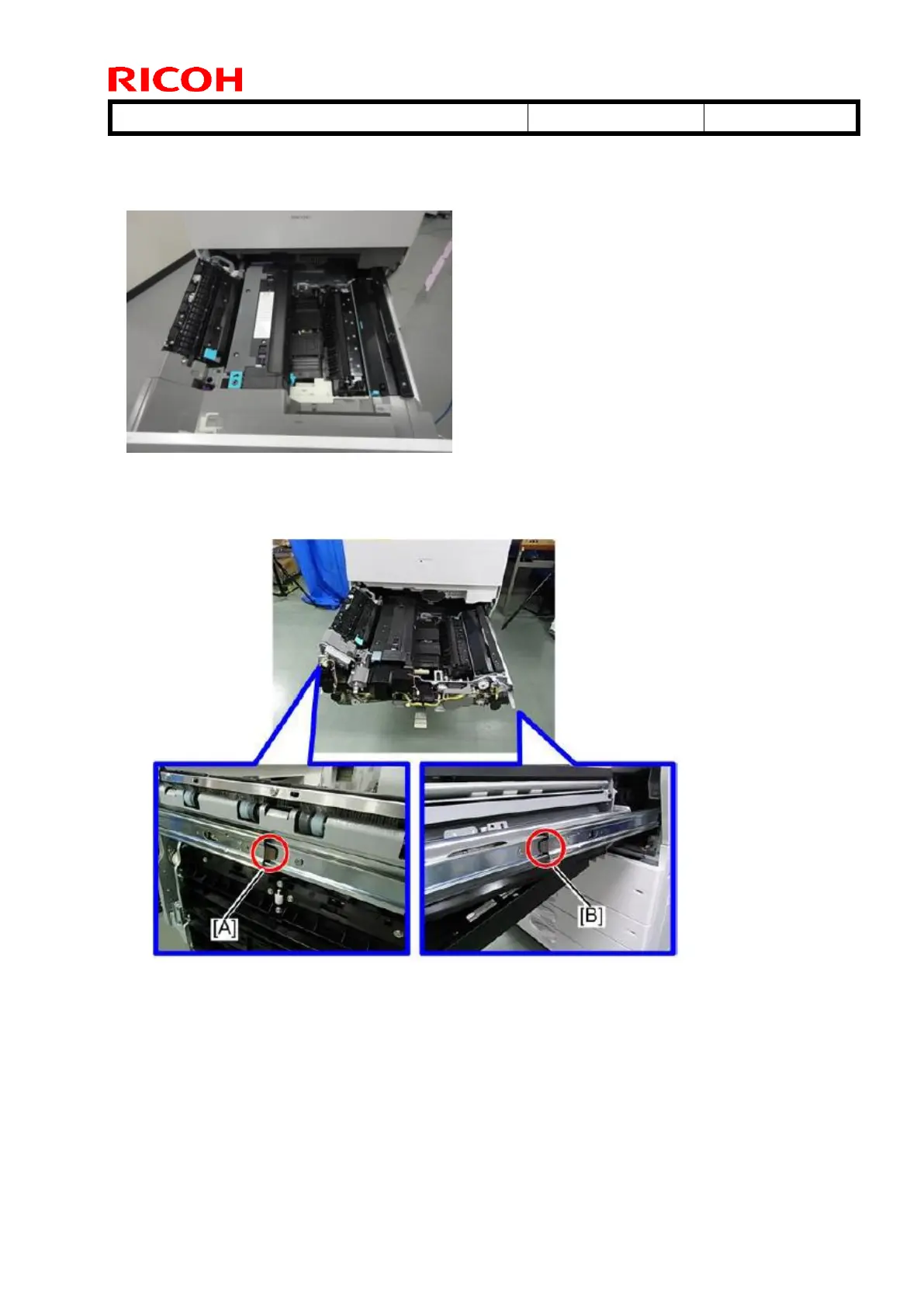 2. Press locks ([A], [B]) and remove the unit from the machine.