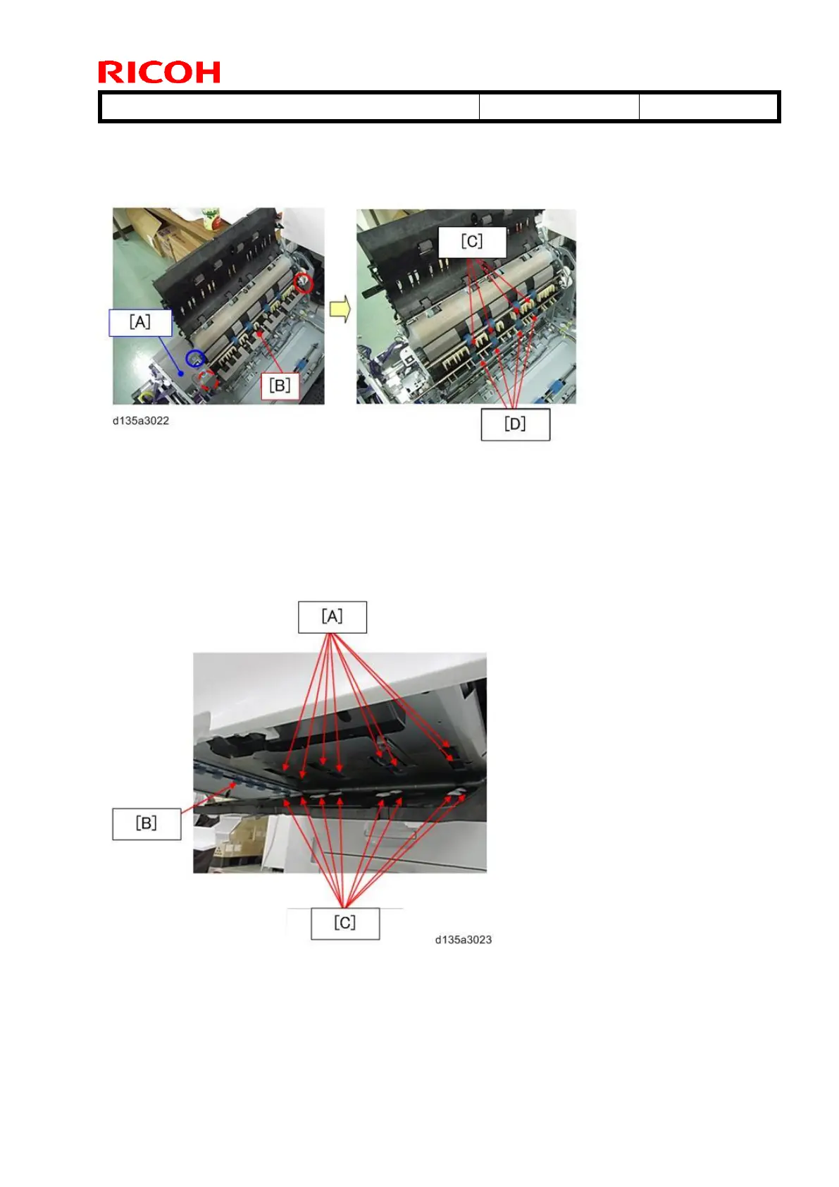 Remove the fusing unit. Remove the screw (circled in blue) to remove the inner cover.