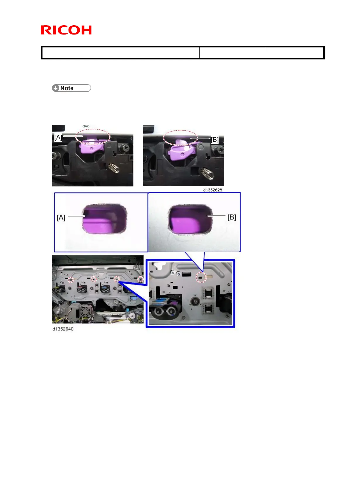 [B]: The locking lever is not properly fit in the hole in the machine frame.
