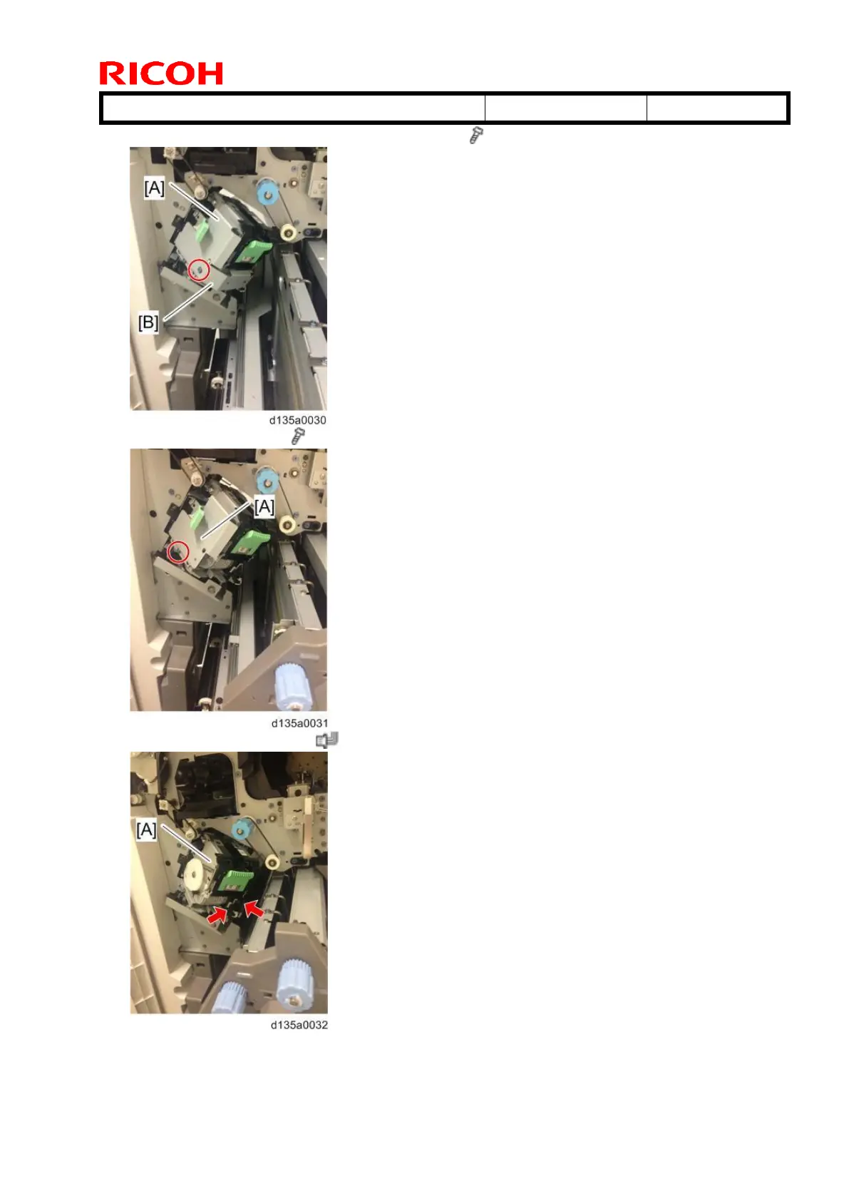 7. Remove the bracket [B] from the stapler [A]. ( x 1)