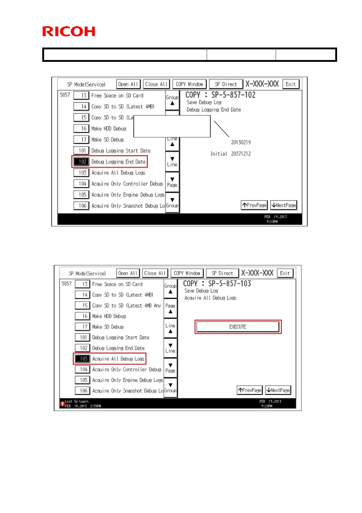5) Press the Execute button in SP5-857-103 to download the log files to the SD card.