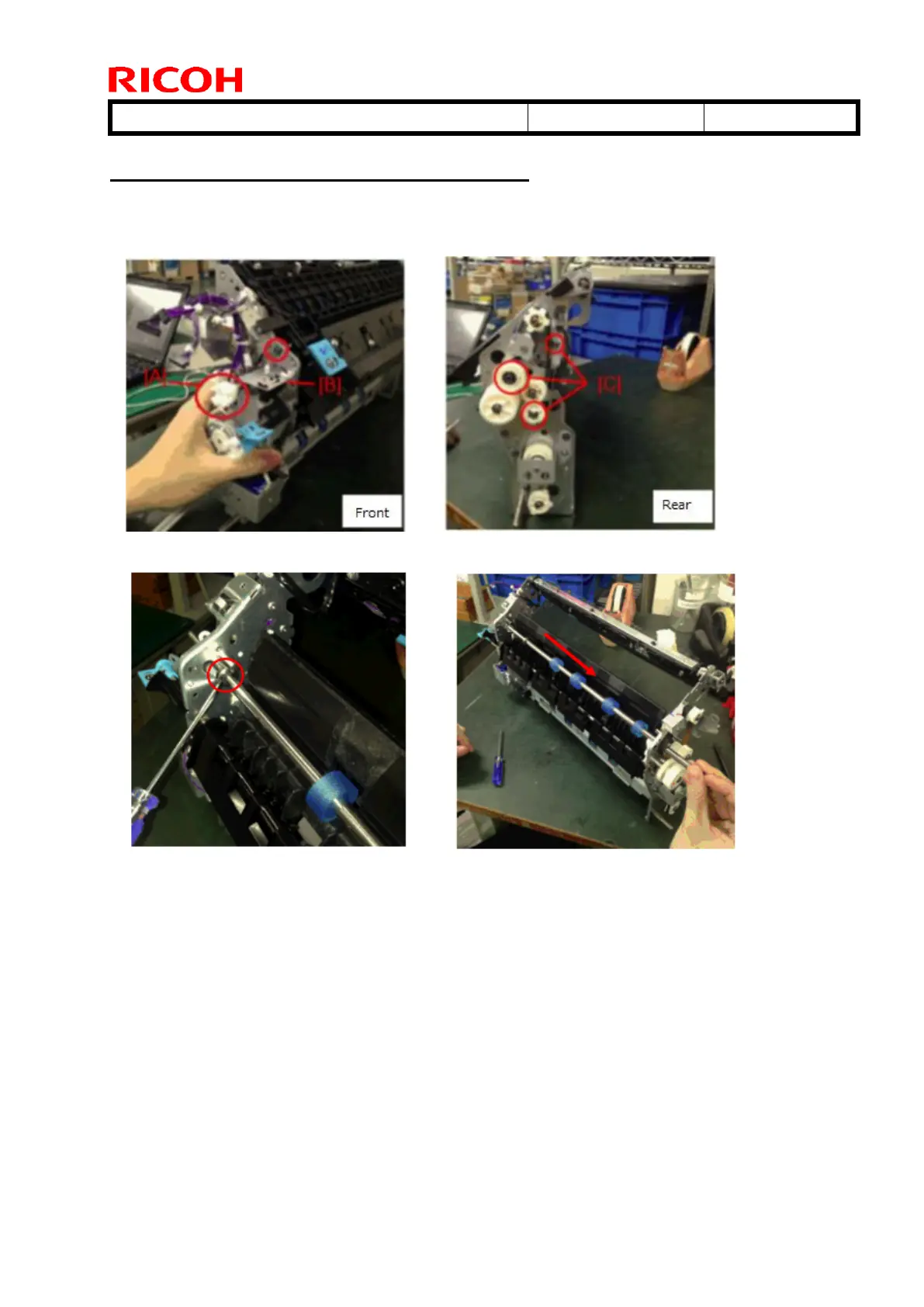 1-1. At the front side, remove the coupling [A] and the bracket [B]. At the rear side, remove the