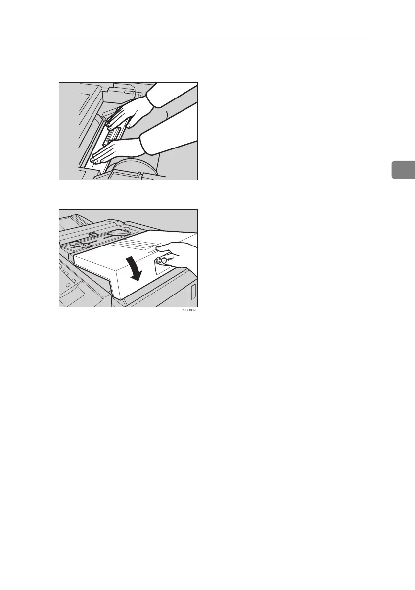 F Close the plotter cover using both
