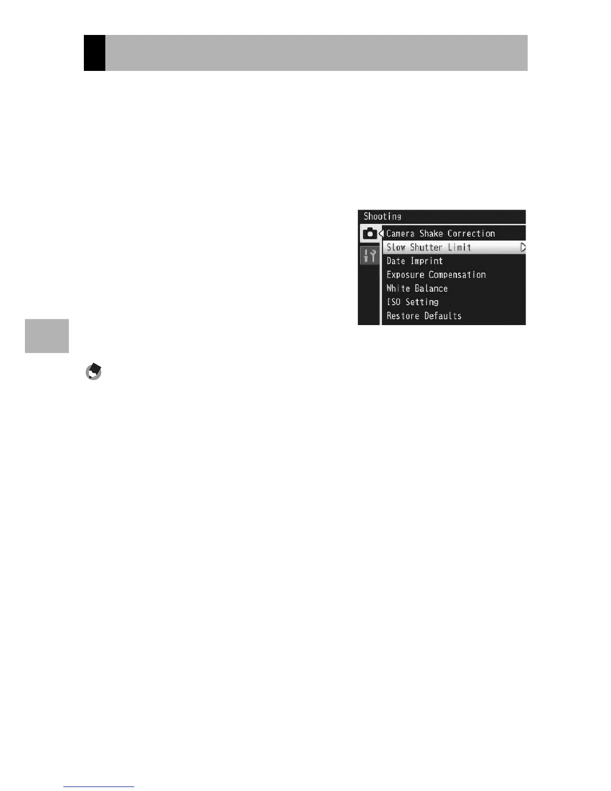 • When using the slow shutter limit, the light quantity may be insufficient depending on