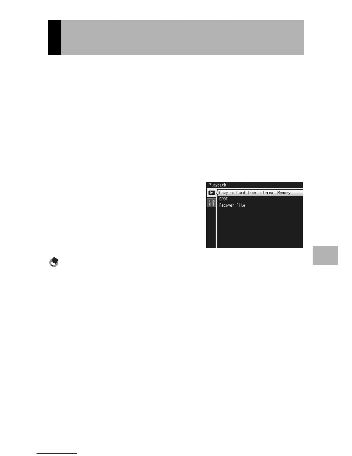• When the contents of the internal memory are copied to an SD memory card, the files
