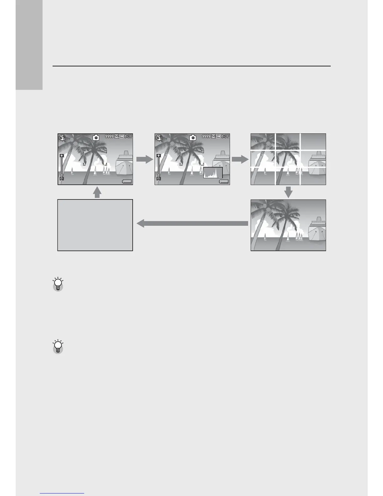 • This displays auxiliary lines on the picture display to help you compose your