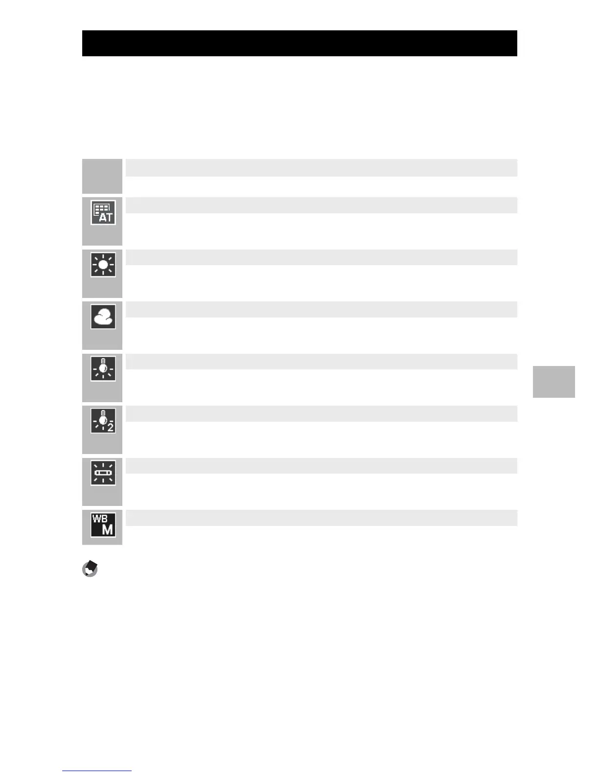 Select this when shooting outdoors (sunny) and white balance fails to adjust