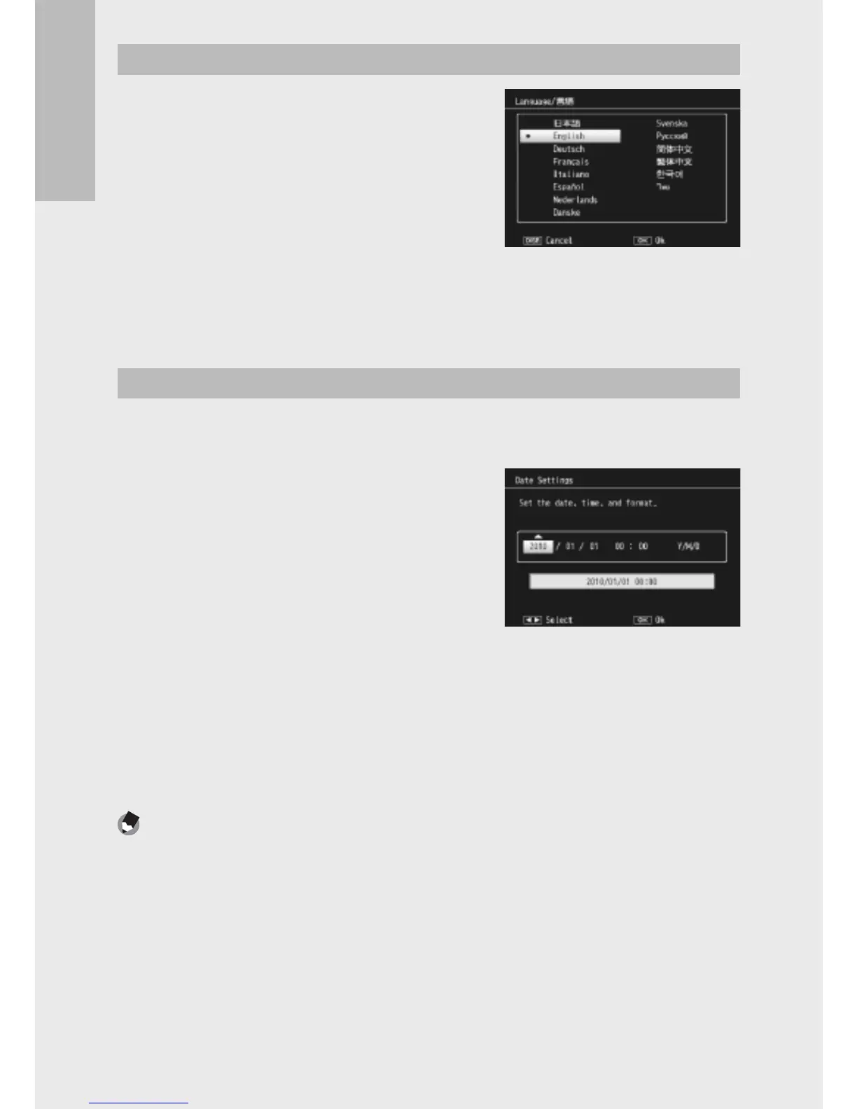 • The display language is set, and the date/time setting screen