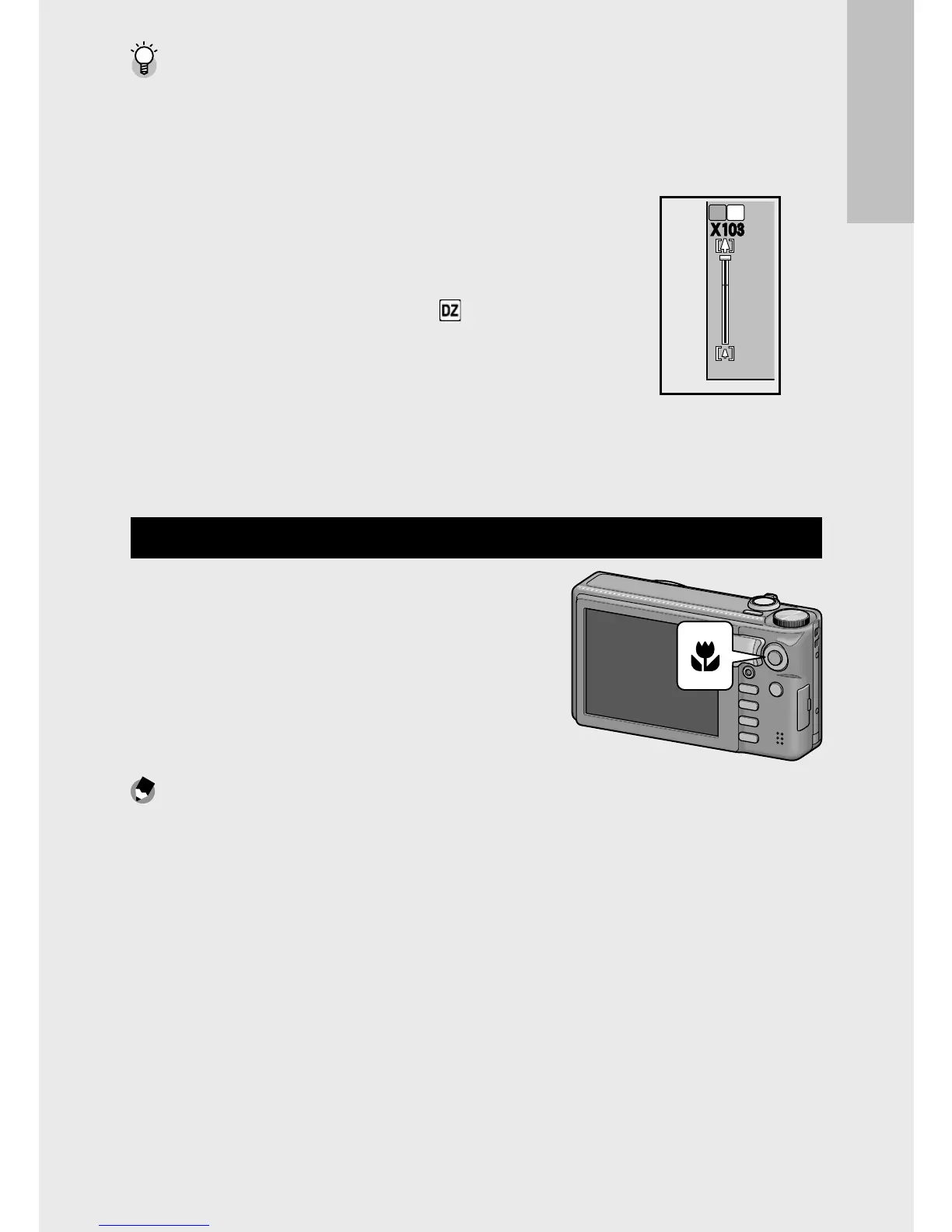 camera. To shoot close-ups, push the ADJ./