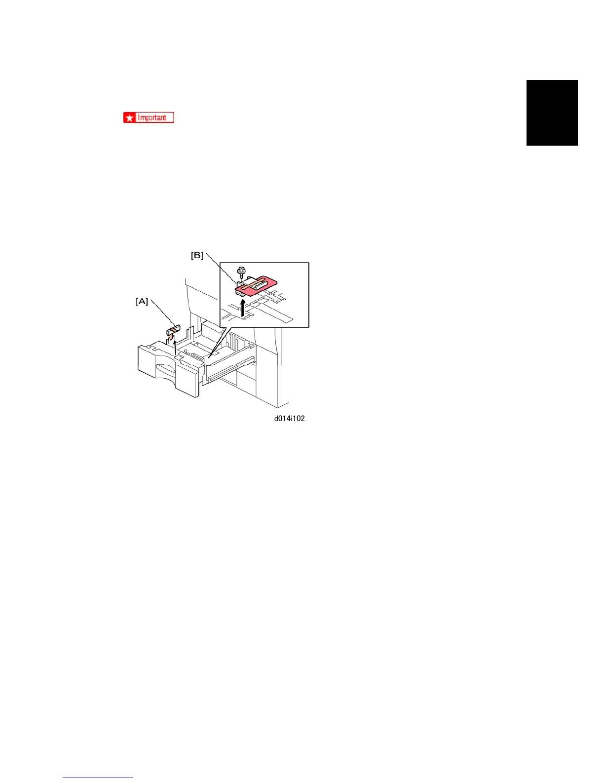 To prevent damage to the ITB, never turn down lever [D] to pull out the drawer