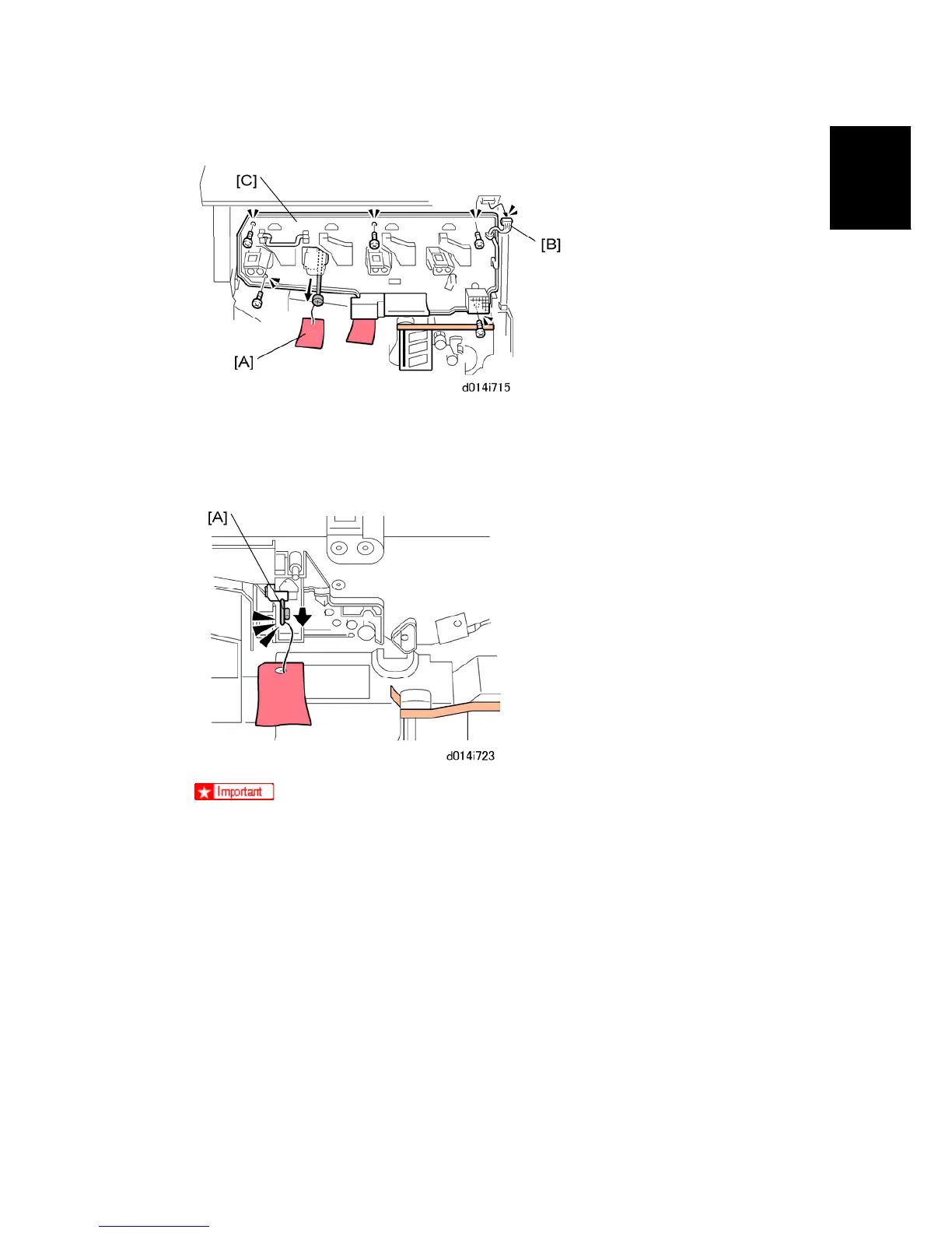 11. Pull on the reinforced ring of the red tag to pull out the stabilizing rod [A].
