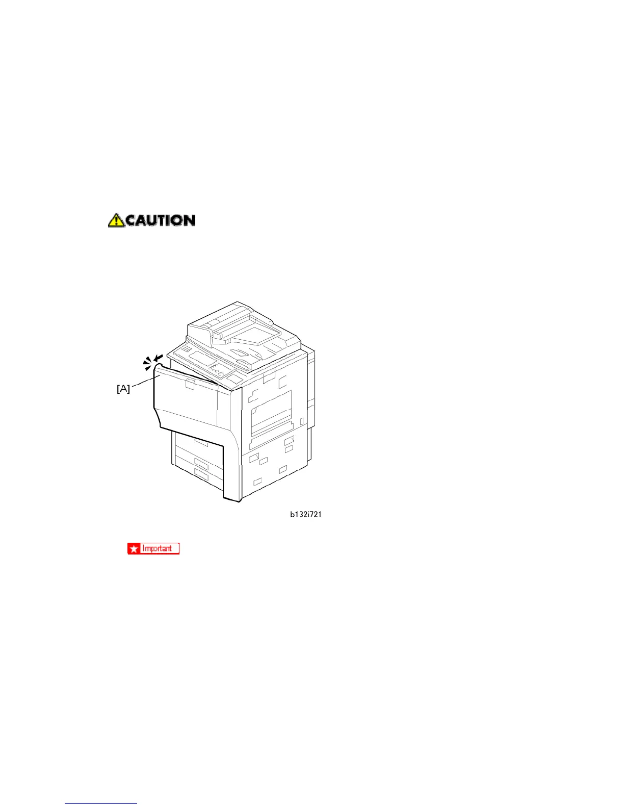 If the machine is switched on during this procedure with the front door closed,