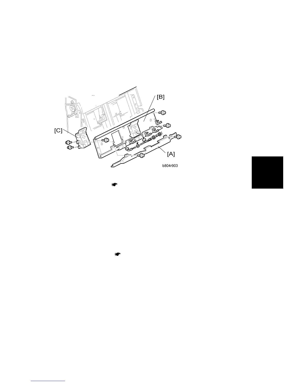 4. Booklet stapler support stay [B] ( x4, x2, = x4)