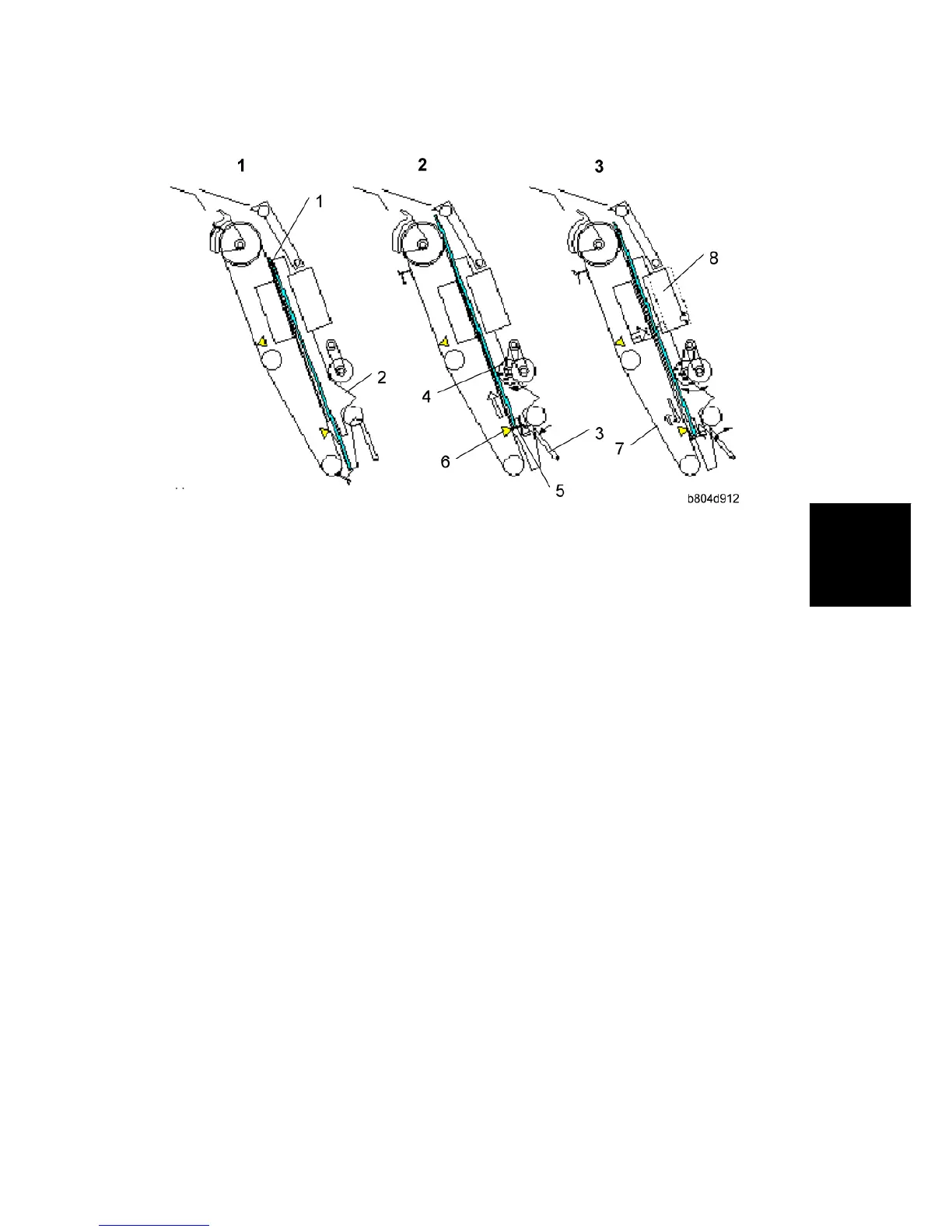 feed out belt switches on and the pawl [5] on the feed out belt catches the bottom of the