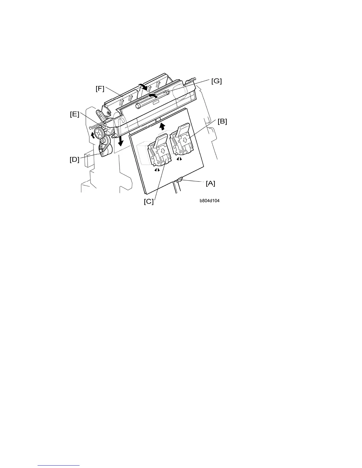[A]: Feed Out Belt Pawl. Raises the stack to stapling position.