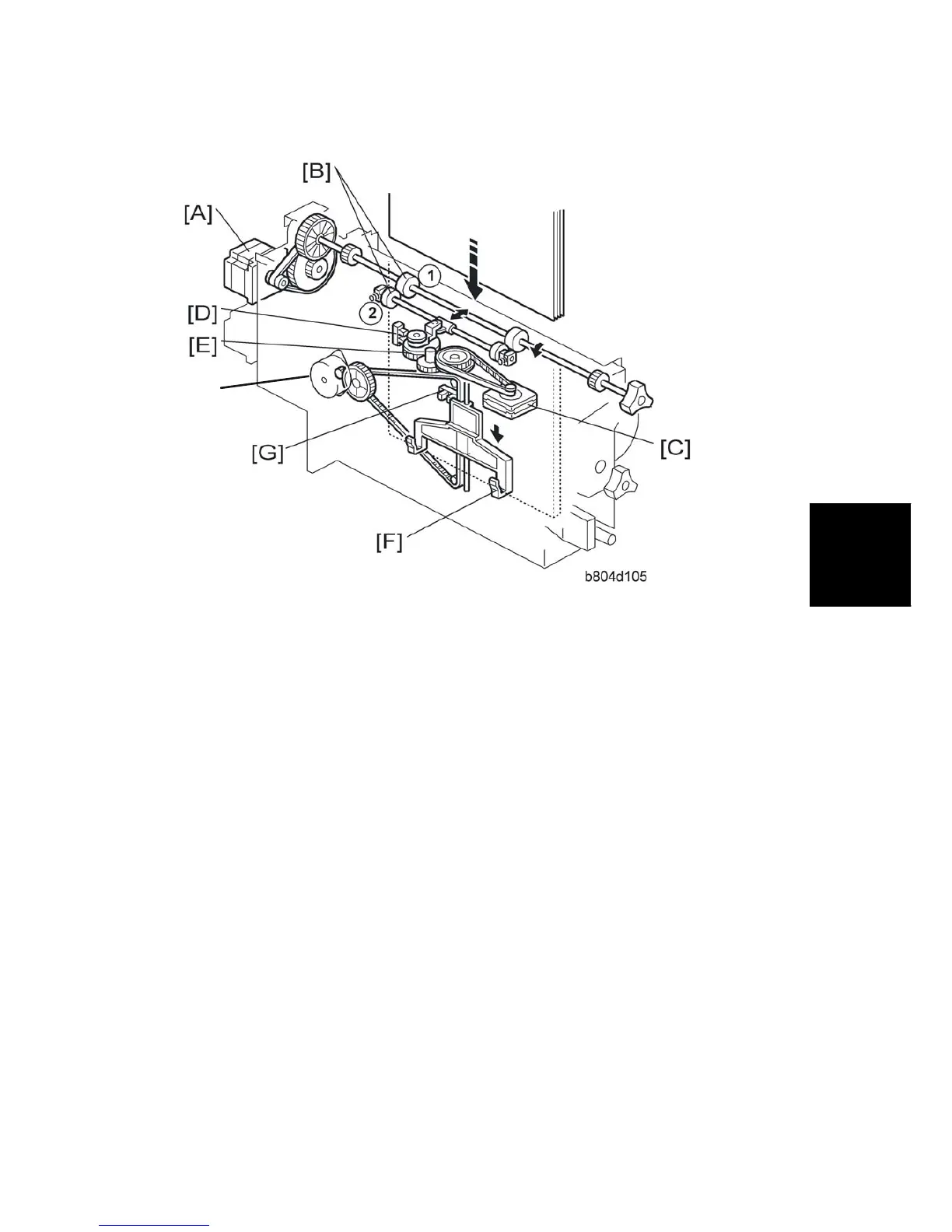 [A]: Fold Roller Motor. Drives the stationary clamp drive roller { as well as the fold rollers
