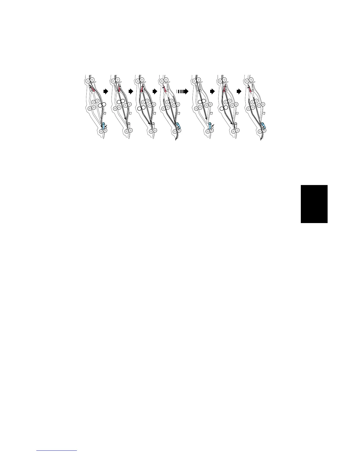 • Three junction gates at the top of the pre-stack tray send the sheet of paper
