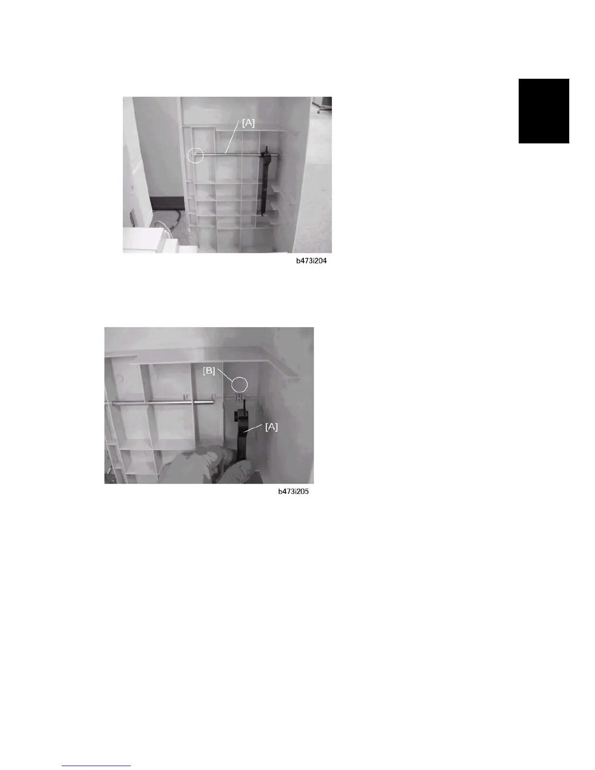 1. Move the LCT end fence [A] from the A4 to the LT position (the position guide is written