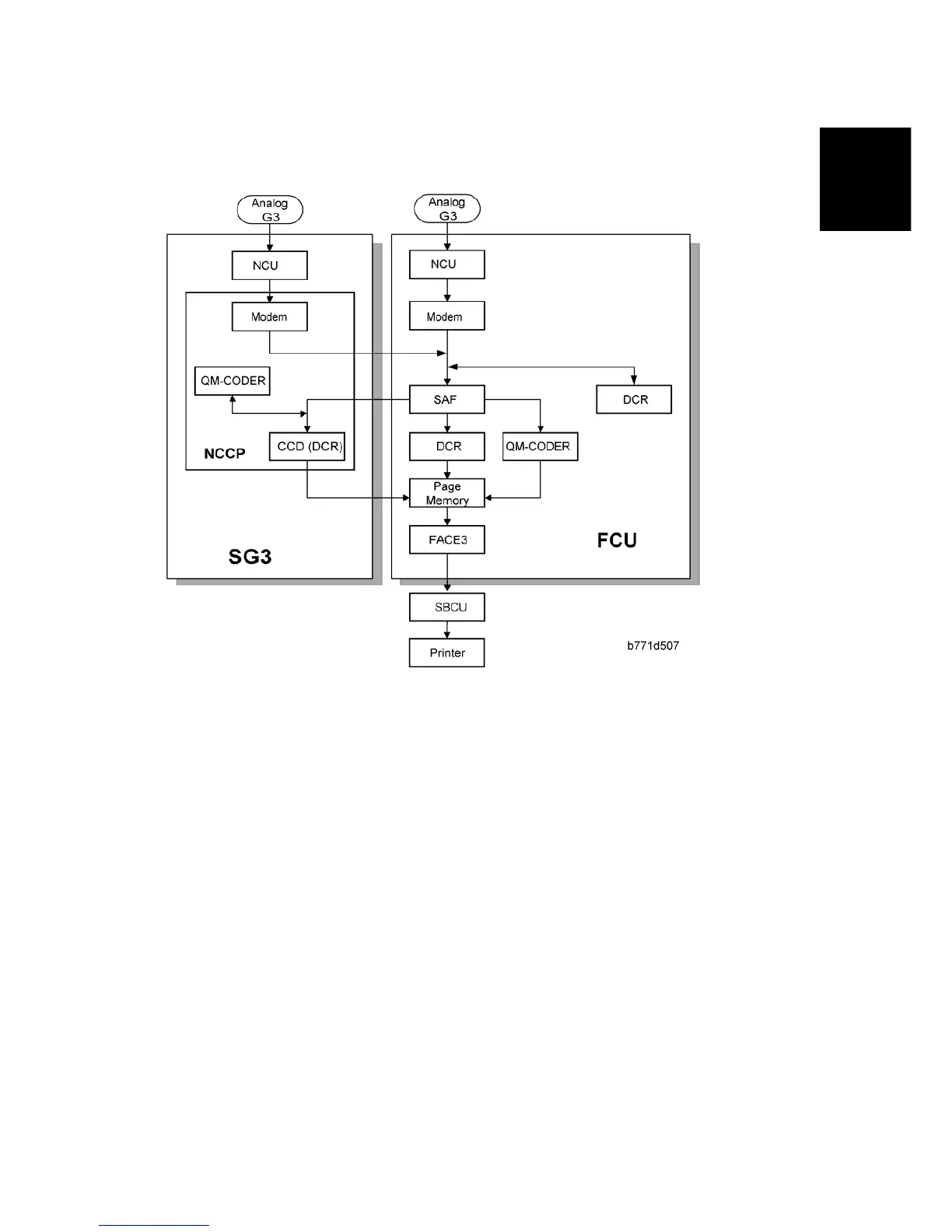 First, the FCU stores the incoming data from either an analog line to the SAF memory. (The