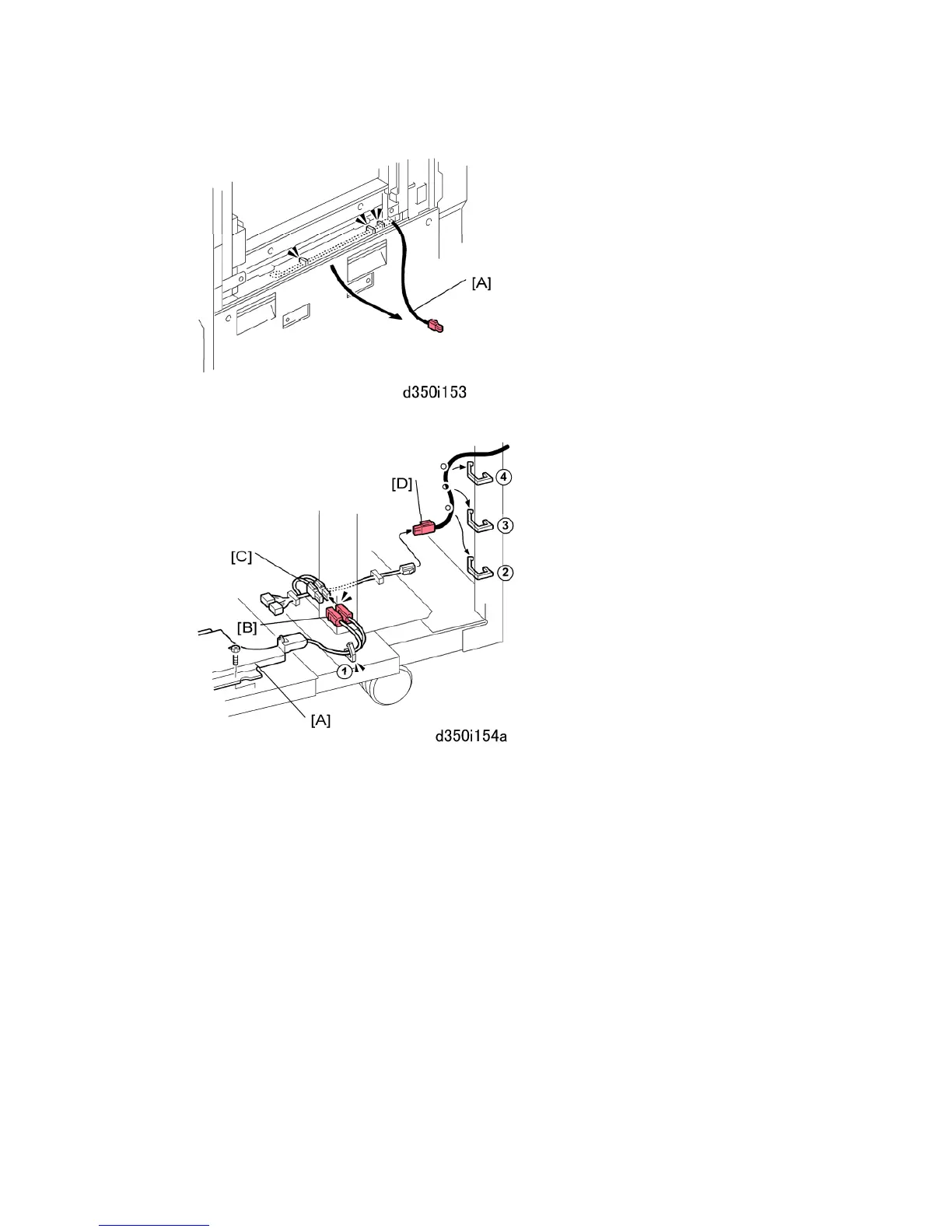 9. Connect the harness from the main machine [D] to the relay harness [C] (x1).