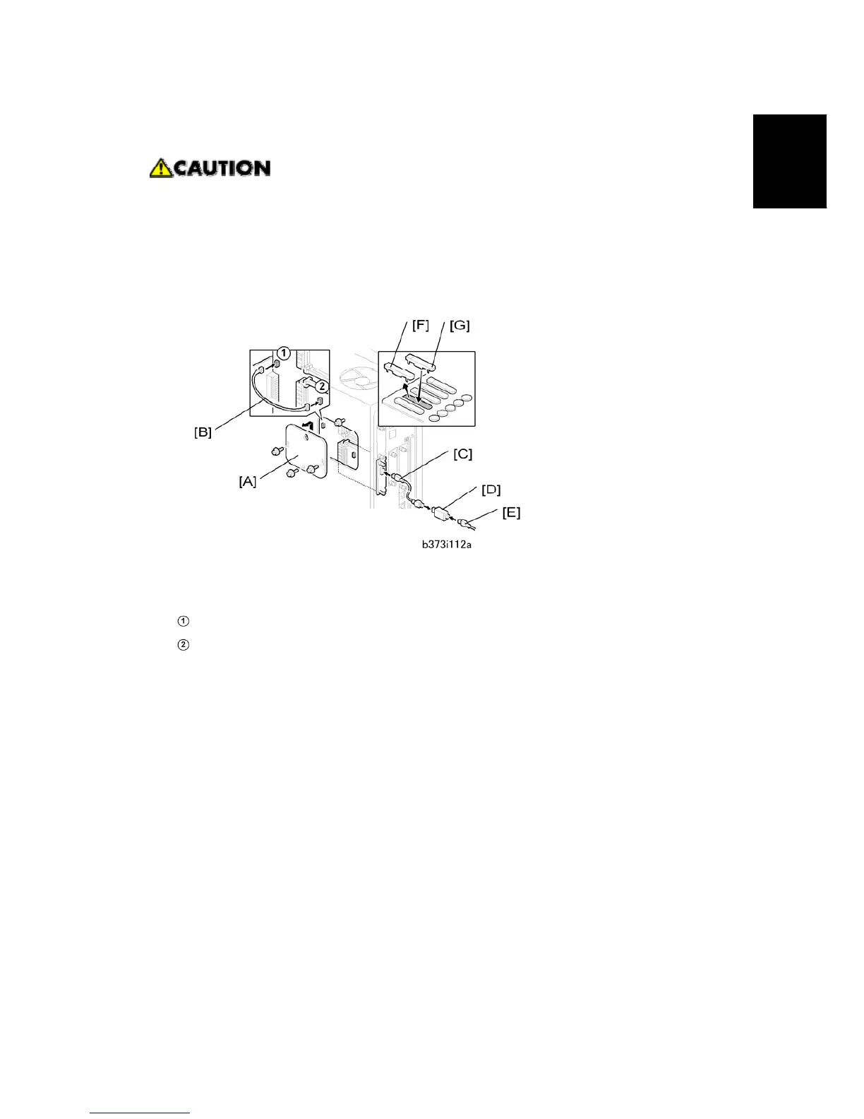 3. Install the Copier Connection Kit Board B328 [B] in Slot A and fasten it ( x 2).