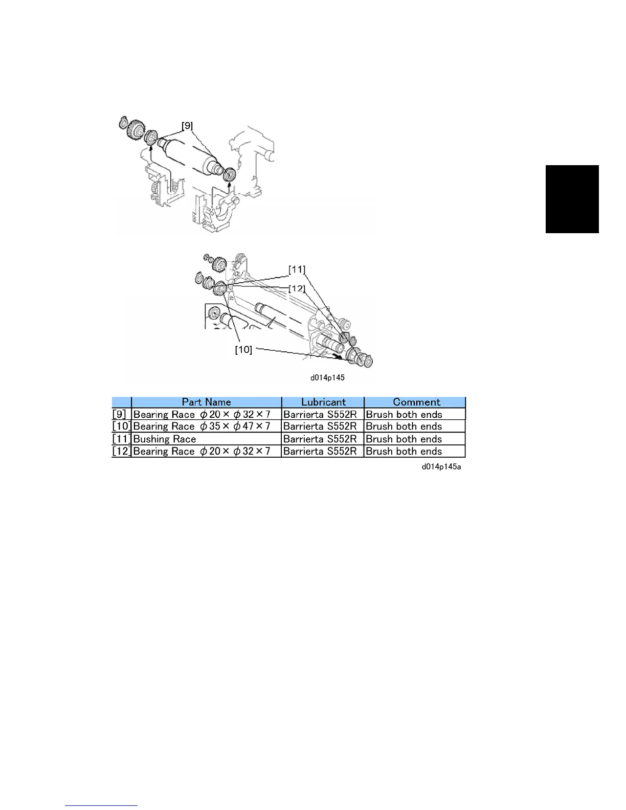 Lubricate all bearings after replacement of the hot roller, pressure roller, and/or heating
