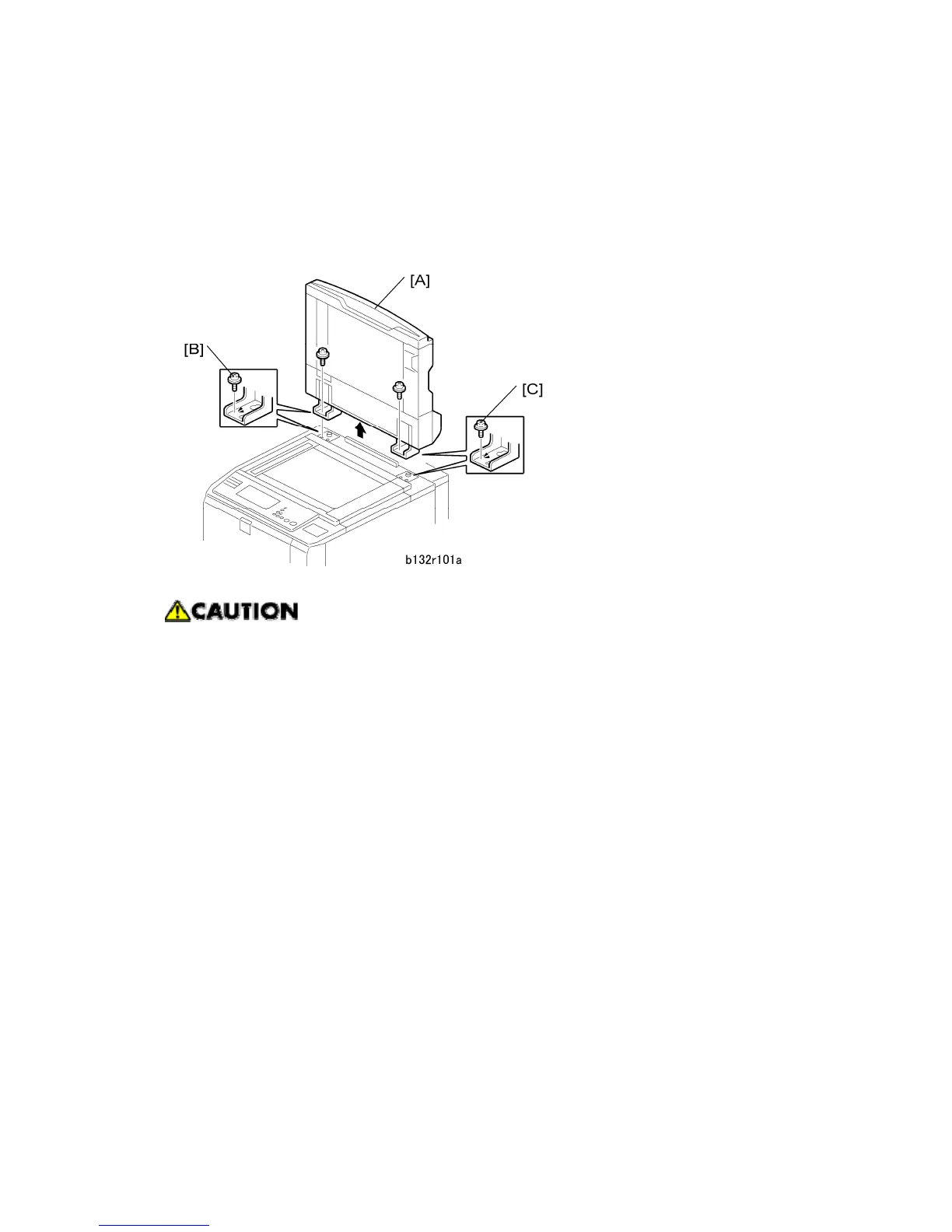 3. Remove the left screw [B] and right screw [C].