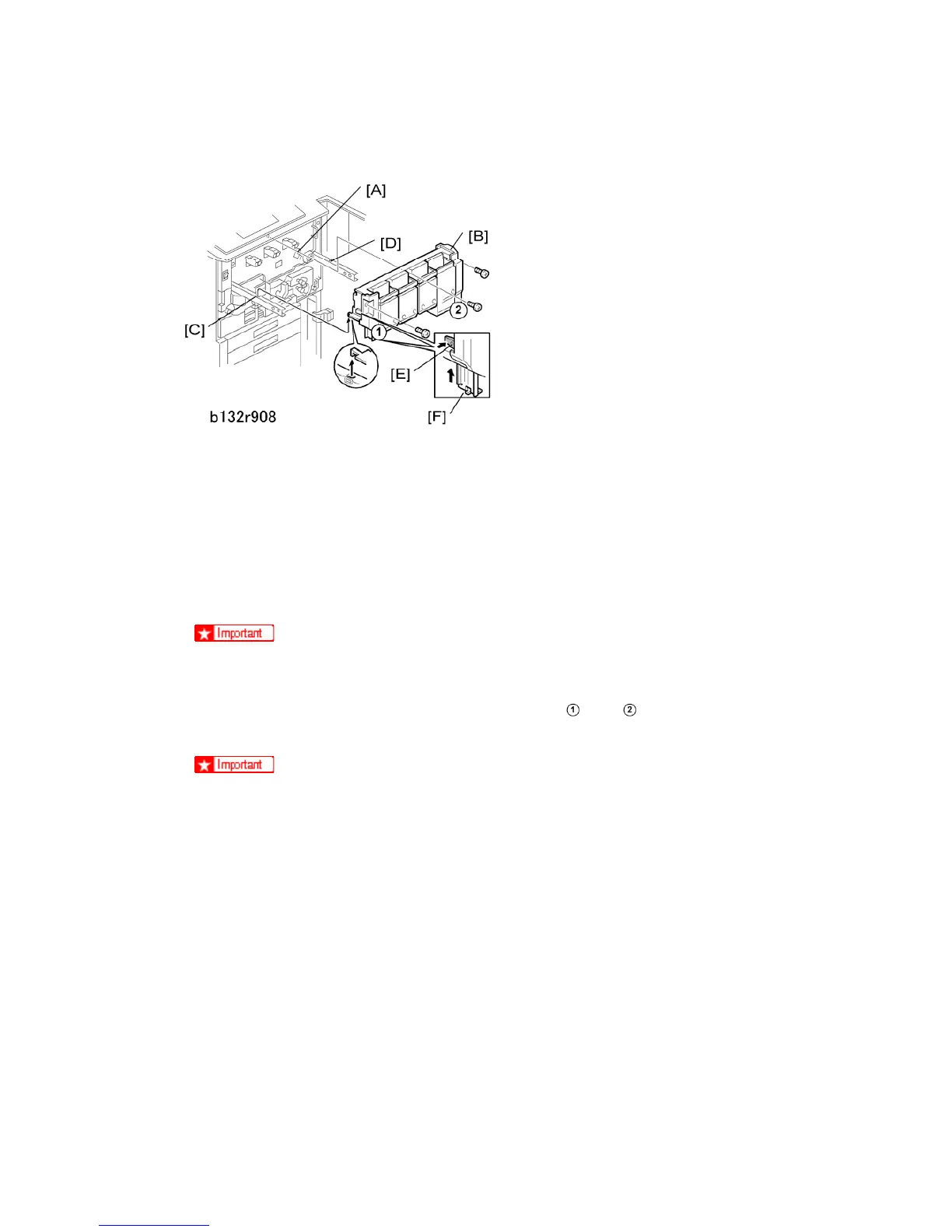 If the toner hopper [B] is not flat against the face plate on the right side, pull it out