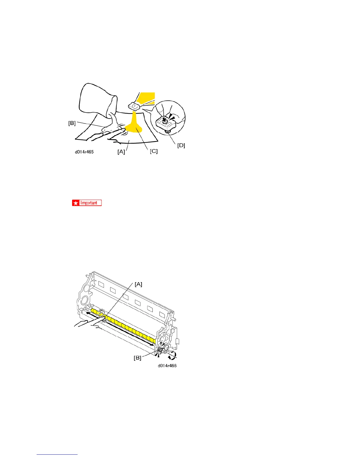 5. Use your finger to apply the lubricant-toner mix to the cleaning brush at [A] while