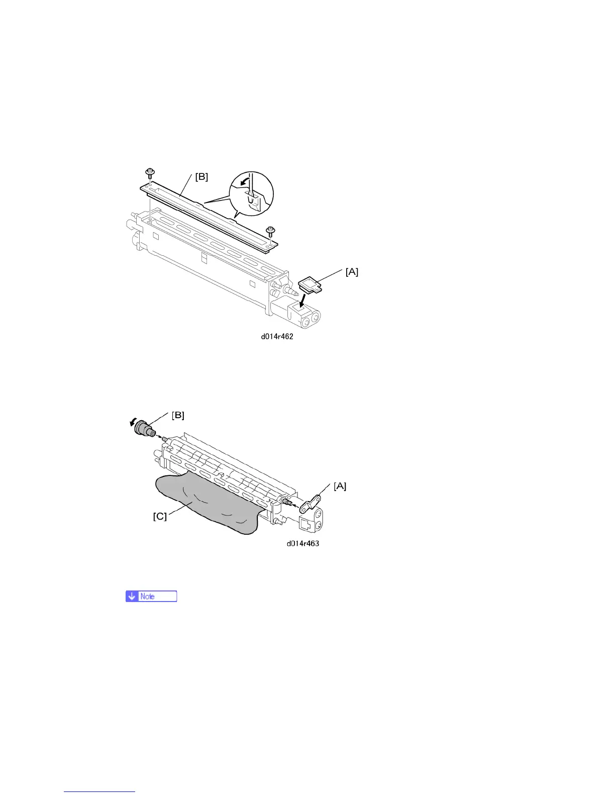 4. Attach the metal jig [A] to the end of the development roller. The jig must be set as