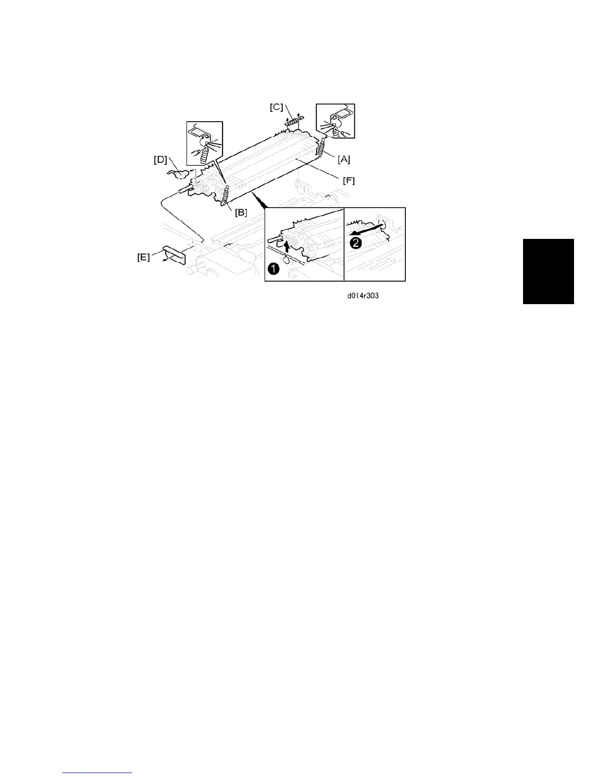 Be sure to set springs [A], [B], and [C] in their original positions before you re-install the