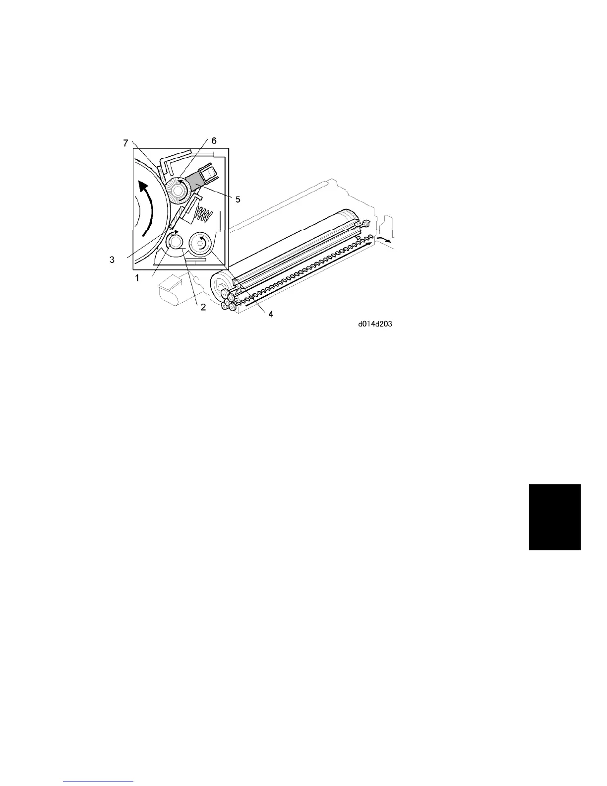 The cleaning roller flicker [2] combs the cleaning brush roller to remove toner from the