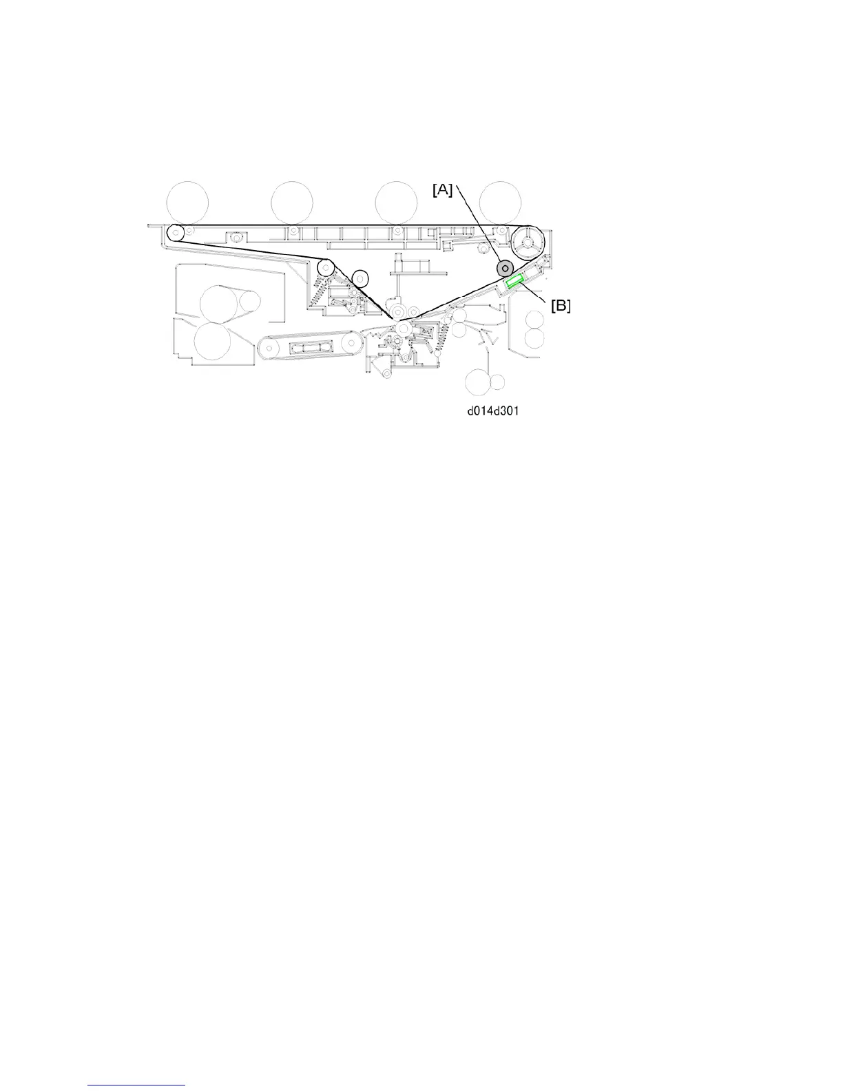 A roller [B] opposite the sensors pushes the transfer belt against these sensors. This