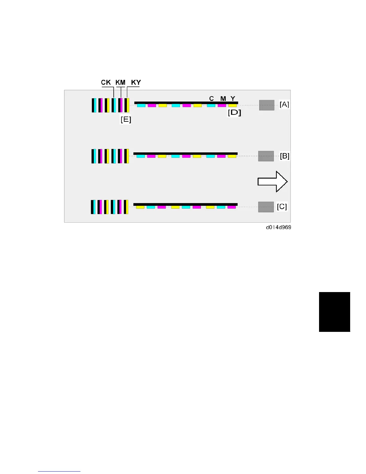 The main scan MUSIC sensor pattern [D] consists of patches for each color (M, C, Y)