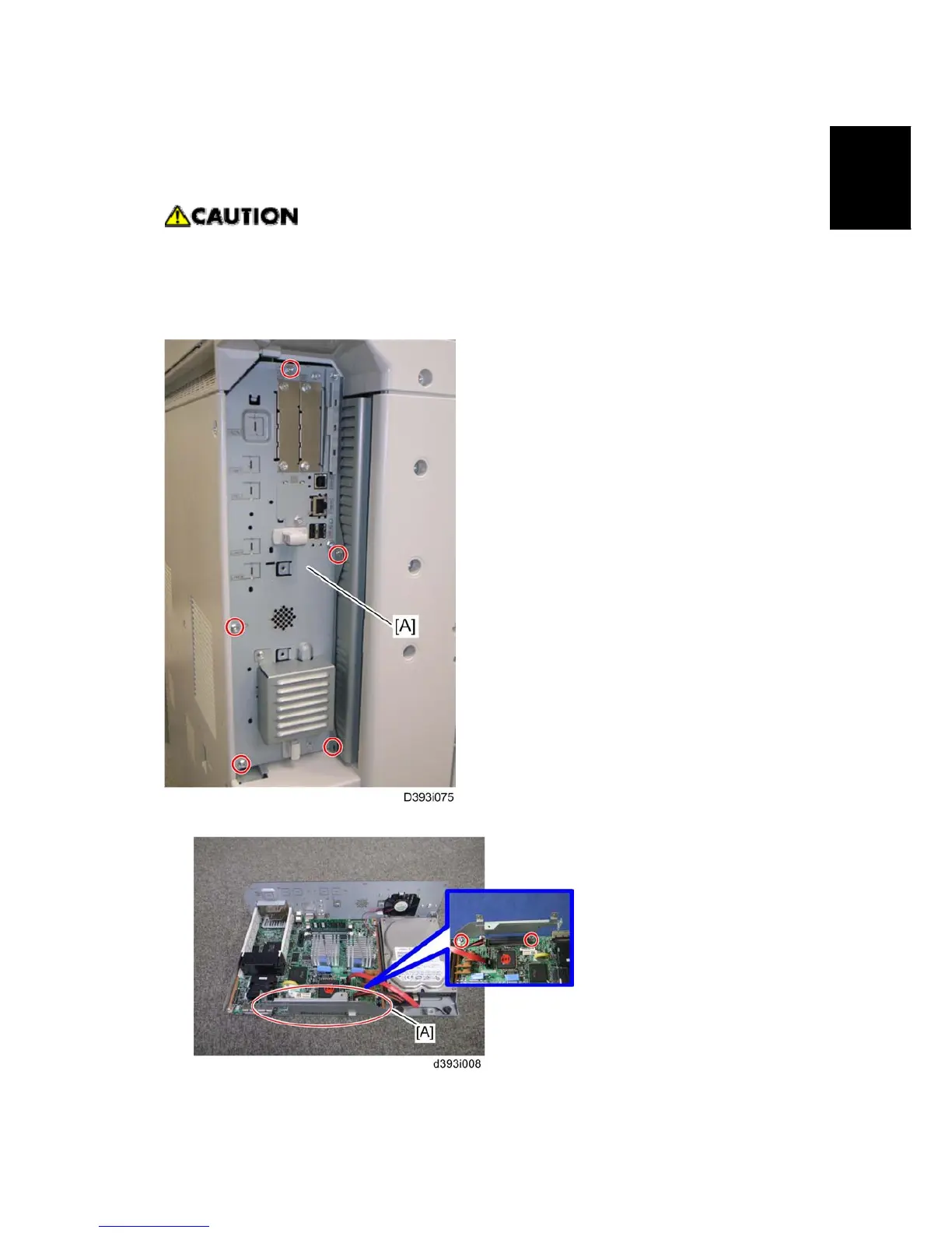 2. Attach the FCU I/F board bracket [A] to the controller board ( x 2).
