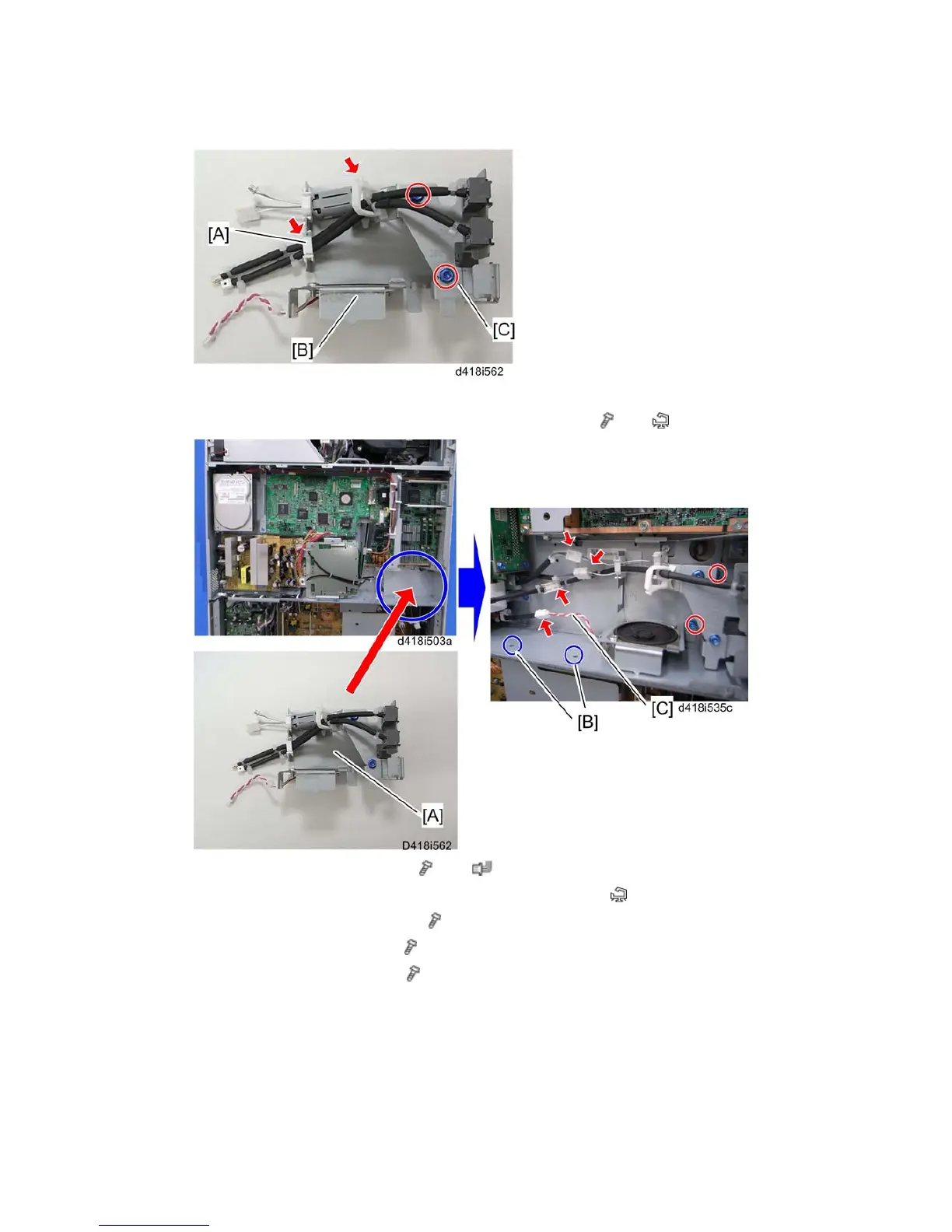 14. Attach the G3 connector bracket [C] to the speaker unit [B] (