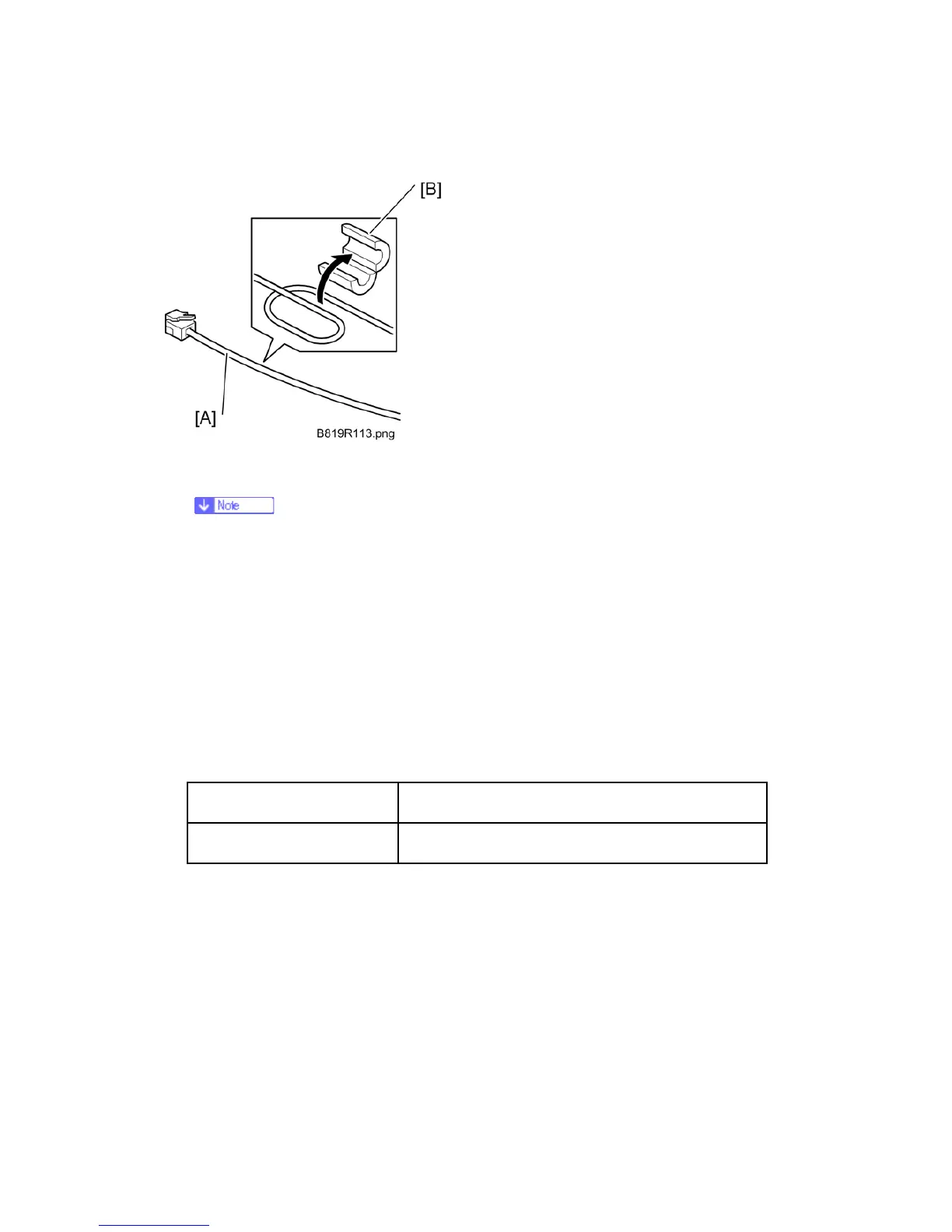 1. Loop one end of the telephone cable [A] once, then enclose it with the ferrite core