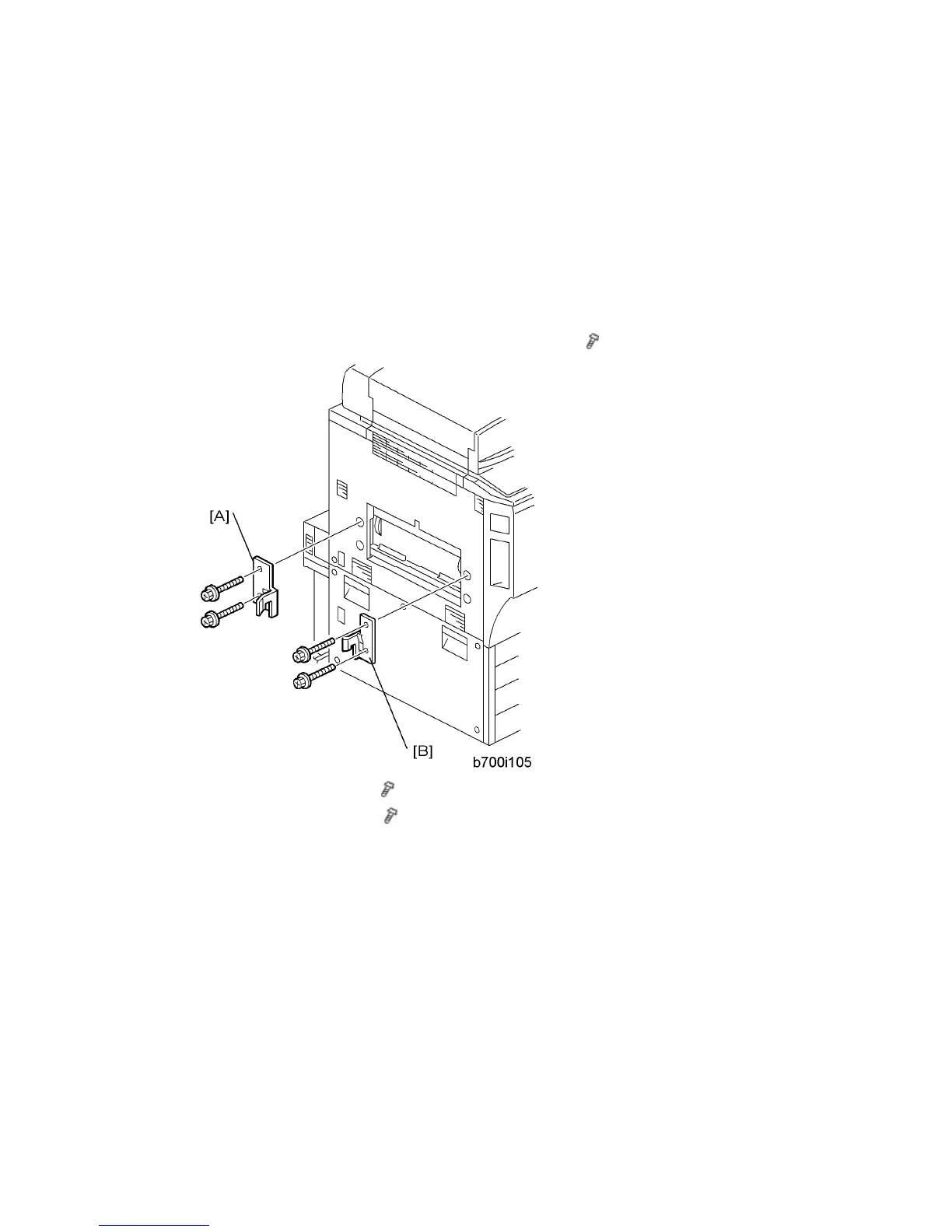 Do not attach the grounding plate [B] to the finisher. It must be attached to the cover