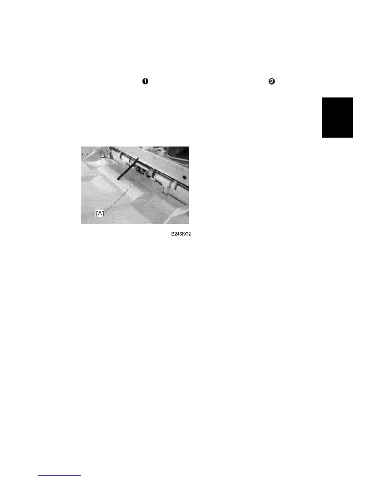 2. If the "Exit Tray Full" alerts continue, set the proof auxiliary tray [A] on the proof tray on