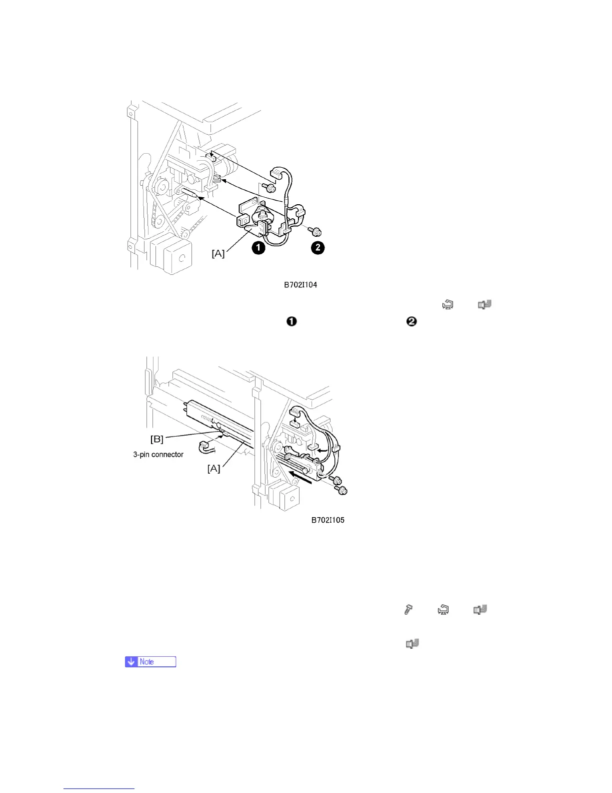 6. Fasten the slide drive unit [A] to finisher and connect it to the punch unit (