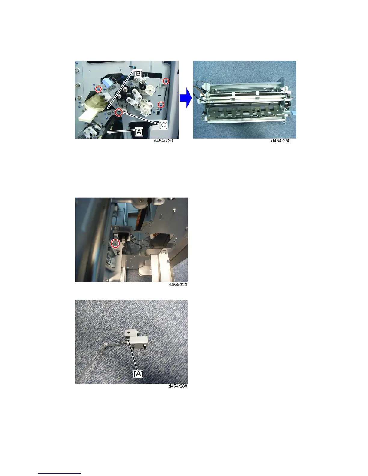 11. Lower guide plate [A], keep the upper guide plate [B] up a little and remove the first fold