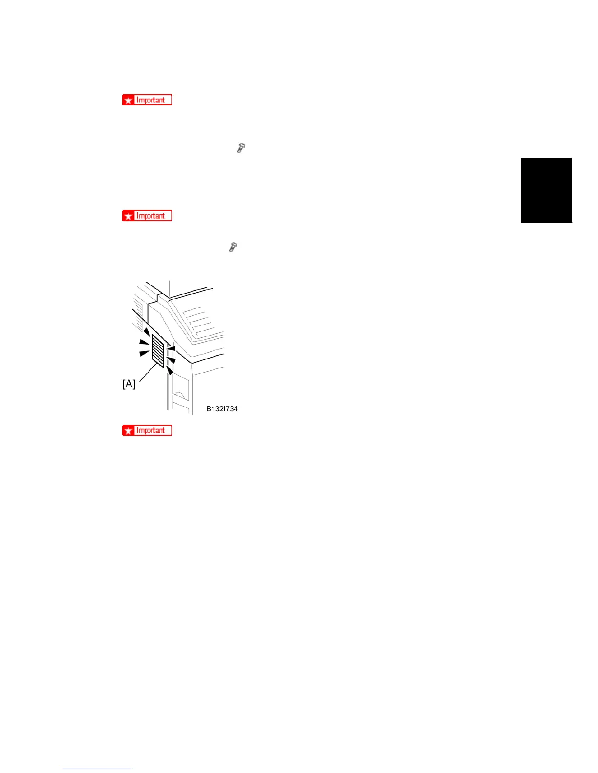 screws removed from the finisher guide plate.