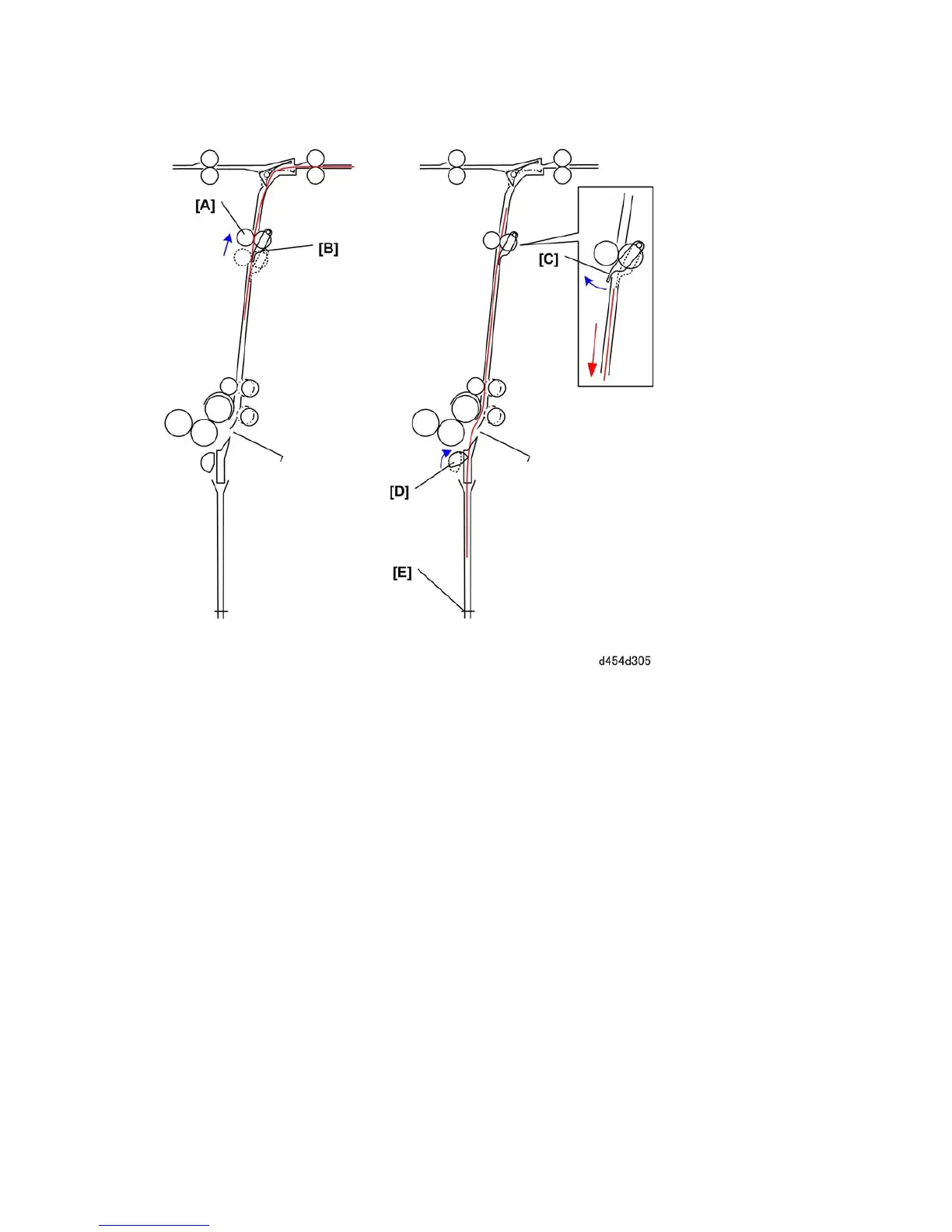 After the trailing edge of the paper passes the dynamic roller, the positioning roller [D] starts