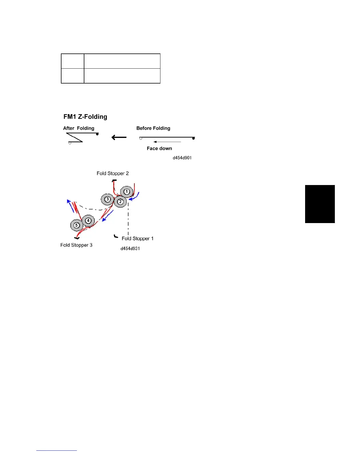 Next, the paper is stopped by Fold Stopper 3. The paper flexes toward the nip of fold