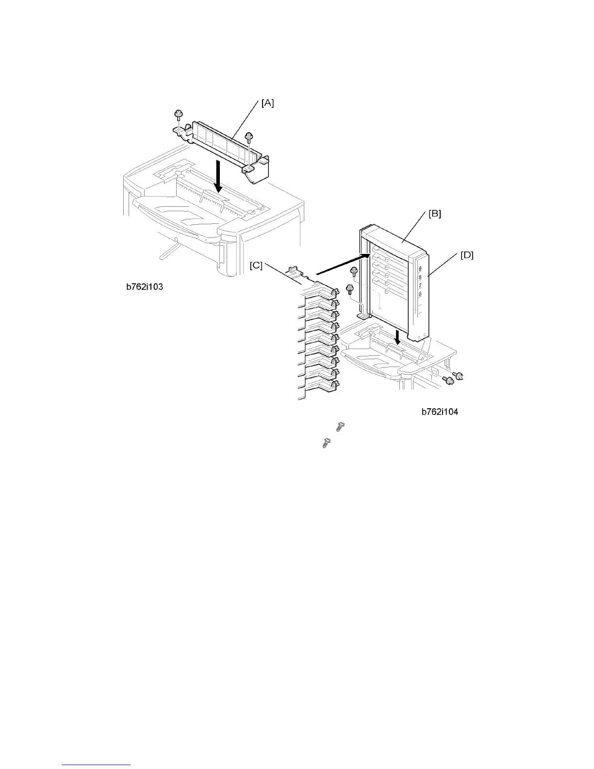 6. Attach the mailbox [B] to the top of the finisher (